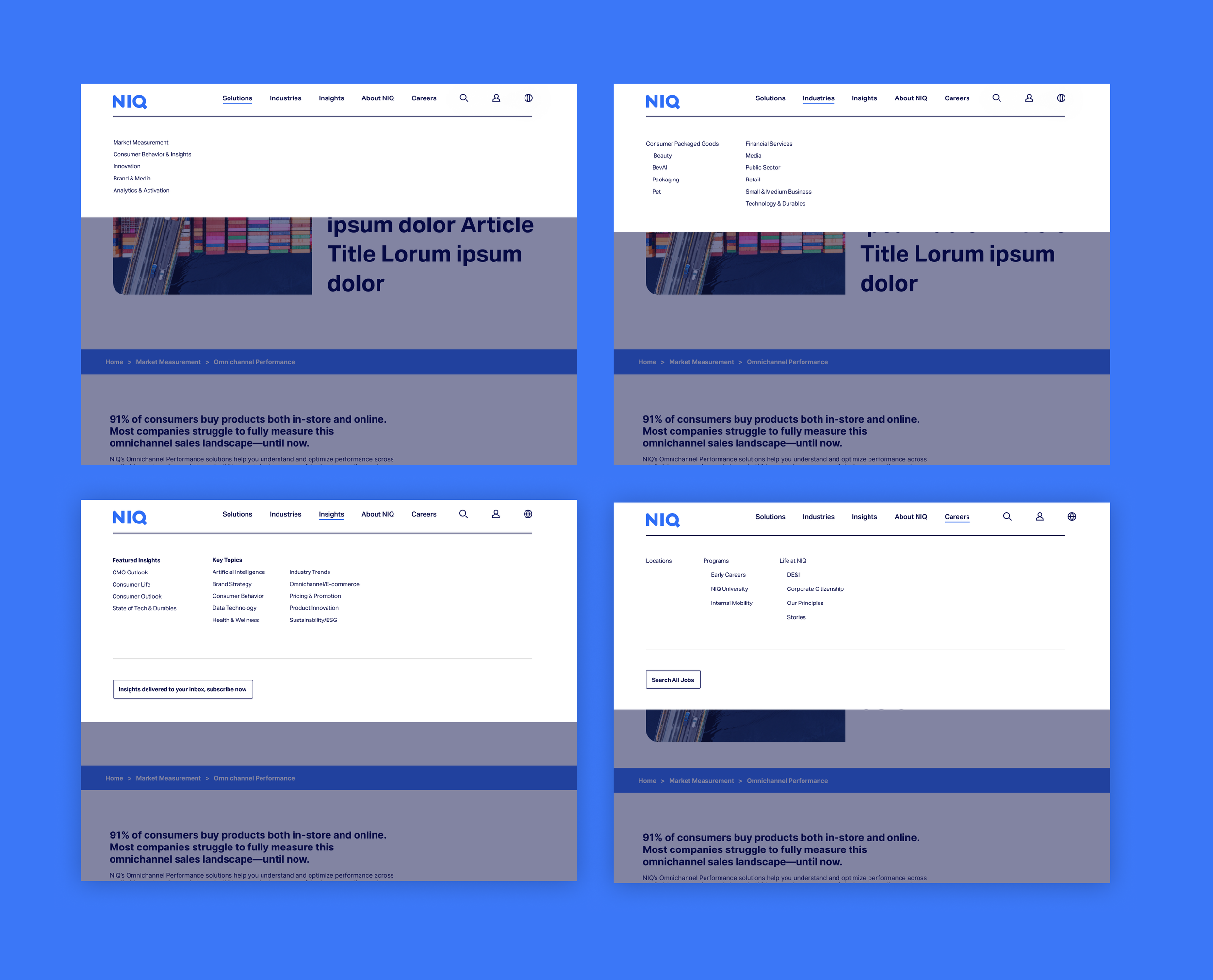 I managed a complete rebrand, restructure, and redesign of nielseniq.com. This included dozens of pages in 8 languages. I designed and built the main pages and set up templates for deeper pages to keep the process sustainable.